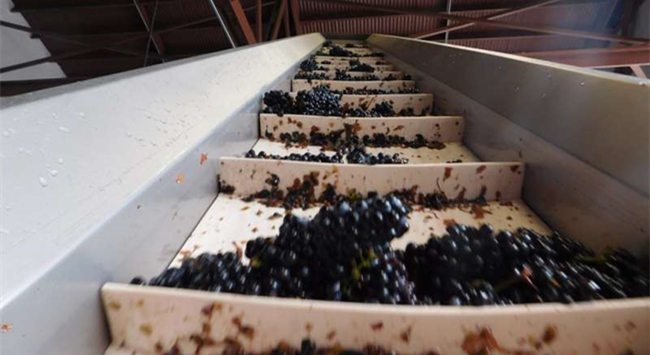 13. 經(jīng)過篩選后的葡萄會進入除梗機中進行去梗。大部分酒莊現(xiàn)在使用的是去梗和破碎一體化的機器,所以在去梗的同時,葡萄果實可能會被輕微壓榨或者完全壓榨(白葡萄品種)。