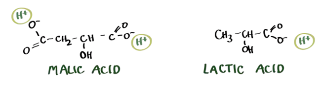 葡萄酒里的“酸”,部分來自葡萄本身,部分則來自于葡萄酒的釀造過程。其中,酒石酸(tataric)、蘋果酸(malic)和檸檬酸(citric)3種源于葡萄果實(shí);另外3種酸,是由酒精發(fā)酵和細(xì)菌活動(dòng)形成的琥珀酸(amber)、乳酸(lactic)和醋酸(acetic)。