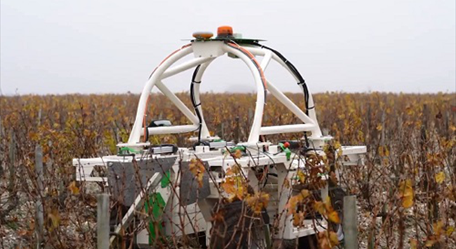 葡萄園除草機器人是較為常見和基礎的機器人,它們能夠快速精準地去除雜草。除此之外,由于體型較輕且?guī)в兄悄茏R別功能的特點,這類機器人對土壤和生態(tài)的破壞極小。2017年,與木桐酒莊(Chateau Mouton Rothschild)同門的克拉米倫酒莊(Chateau Clerc Milon)便在其葡萄園內測試了一款叫作“泰德(Ted)”的除草育土機器人。
