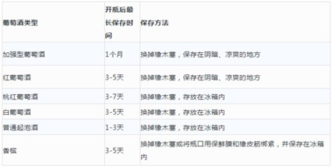 不同類型葡萄酒開瓶后最長(zhǎng)保存時(shí)間