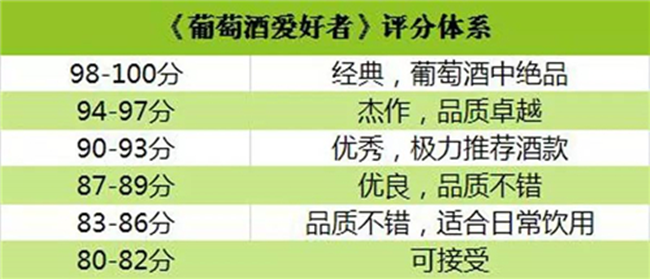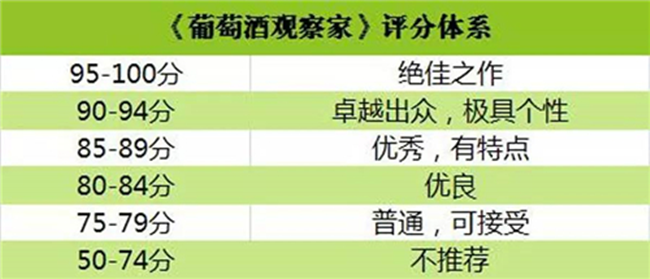(1)《葡萄酒觀察家》采取 100 分制,起始分為 50 分,共分為 6 個(gè)檔次。