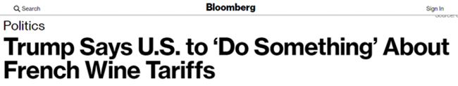 其實(shí),川普盯上法國(guó)葡萄酒也不是頭一回了,之前就在推特上發(fā)文炮轟,痛斥法國(guó)在葡萄酒貿(mào)易上“霸道”,說(shuō)的也是關(guān)稅的事。