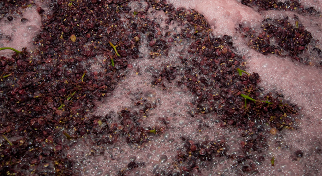 ③ 將完整的整串葡萄與經(jīng)破碎的葡萄混合:發(fā)酵開始后,在經(jīng)過破碎的葡萄中加入整串葡萄,這些葡萄浸泡在其中與氧氣隔絕,便會開始果內(nèi)發(fā)酵。發(fā)酵過程中經(jīng)過壓帽,完整的葡萄便會逐漸破碎。
