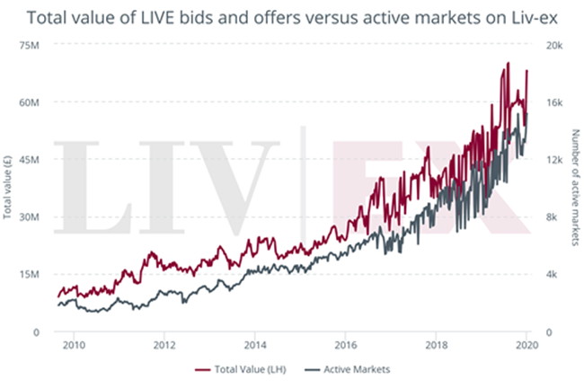 自動化最明顯的影響是使Liv-ex市場的葡萄酒大增。 如我們在最近的有關(guān)博客中指出,在2019年7月,出價和報價總值創(chuàng)7000萬英鎊新高。