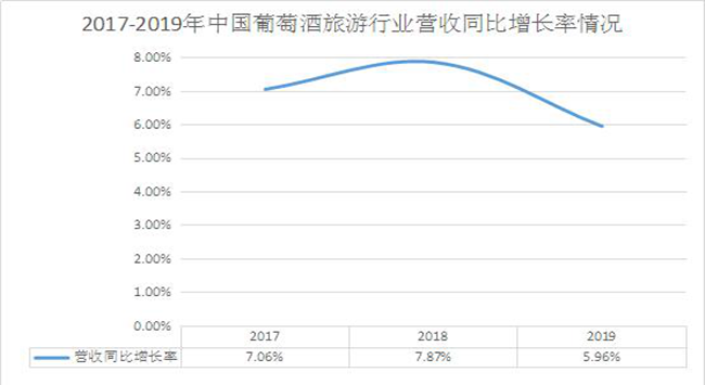 圖表:2017-2019年中國葡萄酒旅游行業(yè)營收同比增長率情況