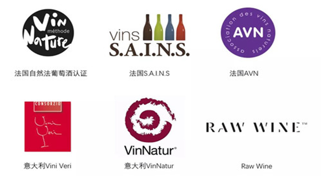 除左上角法國自然法葡萄酒認證標識為官方認證外,其余均為自然酒聯盟組織