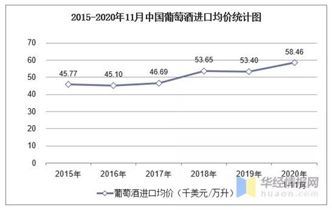 2015-2020年11月中國葡萄酒進(jìn)口均價(jià)統(tǒng)計(jì)圖