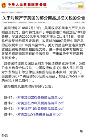 雖然今日中國(guó)對(duì)自美進(jìn)口產(chǎn)品加征25%的關(guān)稅的產(chǎn)品名單里并不涉及葡萄酒,但是8月3日,商務(wù)部發(fā)布的關(guān)于對(duì)原產(chǎn)于美國(guó)的部分商品加征關(guān)稅的公告中,卻將葡萄酒列入了“對(duì)美加征25%關(guān)稅商品清單”,最終措施及生效時(shí)間將另行公告。