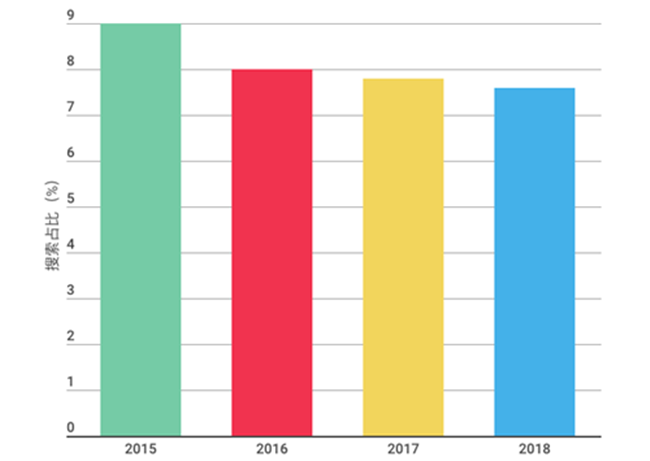 2015至2018年智利葡萄酒在“酒咔嚓”葡萄酒搜索平臺(tái)搜索占比變化