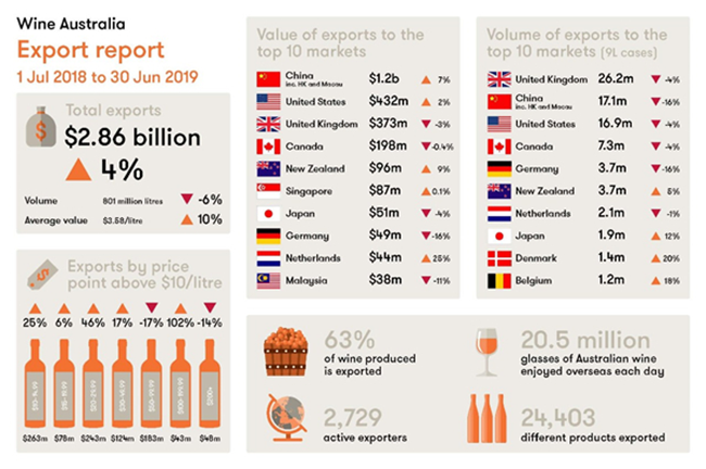 截至2019年6月底的12個(gè)月中,澳大利亞葡萄酒的出口總額增長了4%至28.6億澳元。其中,對中國市場的出口額持續(xù)增長7%,創(chuàng)下12億澳幣新高。