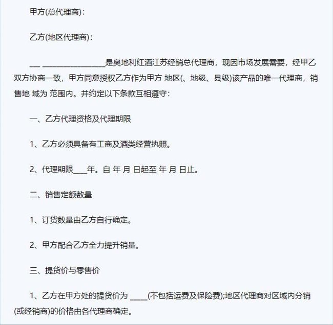 簽署紅酒代理合同的話,首先要注意仔細(xì)閱讀清楚合同的條款,詳細(xì)了解代理要求和支持政策以及違約責(zé)任等各方面的信息。確認(rèn)無(wú)誤后在簽署。