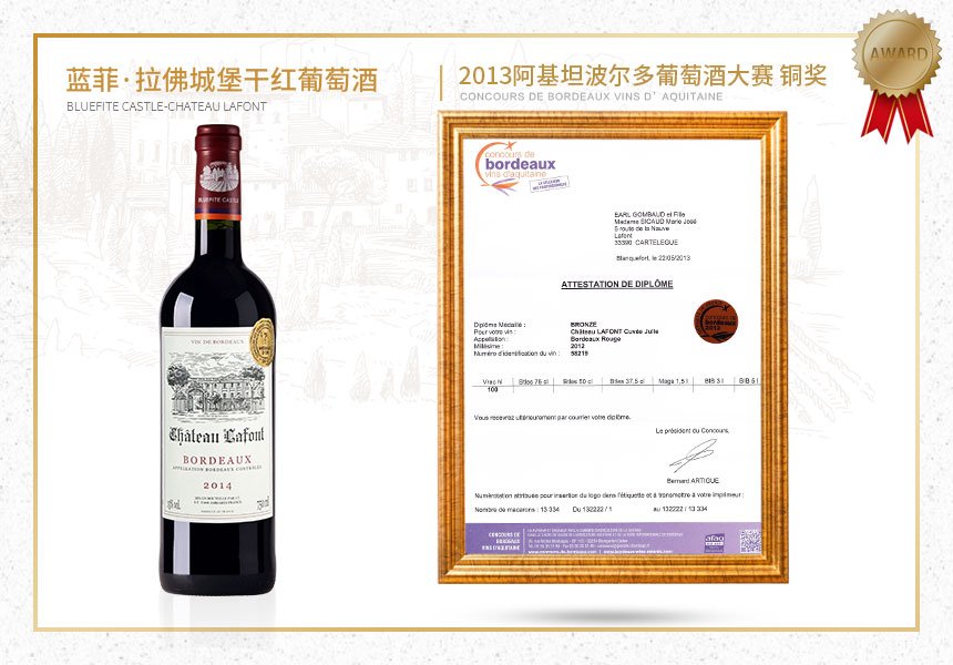 藍(lán)菲酒莊坐落于法國最大的AOC葡萄酒產(chǎn)區(qū)波爾多,也是波爾多僅存的幾家獨(dú)立傳統(tǒng)家族酒莊之一。1958年, 酒莊創(chuàng)始人羅杰·寶悅(Roger Bouey)先生以大量的資金購買了距離波爾多不遠(yuǎn)的昂巴勒斯大倉庫(Ambares), 也收購了大量的葡萄園,和他的兒子賽吉(Serge)以及安德烈(Andre)一起創(chuàng)立了藍(lán)菲酒莊,并以無限激情, 將畢生奉獻(xiàn)給了葡萄酒事業(yè)。如今,酒莊已經(jīng)由家族第三代繼承人帕特里克·寶悅(Patrick Bouey)——羅杰· 寶悅(Roger Bouey)的孫子掌管。