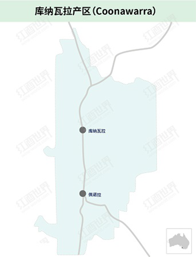 庫納瓦拉產(chǎn)區(qū)坐落在南澳州的石灰?guī)r海岸(Limestone Coast)的中心地帶,與維多利亞州(Victoria)比鄰而居,整個(gè)產(chǎn)區(qū)呈南北狹長狀分布,長約15公里,平均寬度僅有1.5公里,在整個(gè)澳大利亞版圖上顯得十分袖珍。不過,這里卻是澳大利亞最古老的葡萄酒產(chǎn)區(qū)之一,葡萄種植歷史最早可追溯至1891年。當(dāng)年,來自蘇格蘭的約翰·瑞多克(John Riddoch)在這片土地上種下了第一批葡萄樹,進(jìn)而創(chuàng)建了科莫酒莊(Chateau Comaum)??上У氖牵虍?dāng)?shù)亟?jīng)濟(jì)落后,且遠(yuǎn)離主要消費(fèi)群體,該酒莊當(dāng)時(shí)并沒有發(fā)展起來。