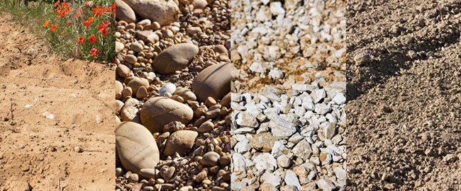 羅納河谷葡萄園坐落于中央高原(Massif Central)與阿爾卑斯山(Alps)之間,北邊被中央高原古老的噴發(fā)巖所覆蓋,南邊是中生代(侏羅紀(jì)和白堊紀(jì))的海洋沉積土壤,以石灰?guī)r為主。第三紀(jì)末(約2400萬年至700萬年前),阿爾卑斯山的形成,使得河谷崩裂,將高原分成兩半。地中海的海水涌進(jìn)來,用巖屑填滿了河谷。從第四紀(jì)開始,河谷的坡面形成了很多沖積和崩積而來的階地。如今,羅納河谷葡萄園的風(fēng)土主要由四種巖石構(gòu)成:花崗巖、沙土、石灰?guī)r和黏土。這些母巖對葡萄樹根部保持適宜的水分起到了關(guān)鍵作用,為這里的葡萄酒帶來結(jié)構(gòu)與芳香。