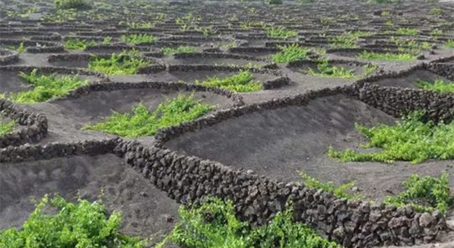 加那利群島黑色的土壤總讓人想起侏羅紀(jì)公園。這些島嶼位于大西洋上,地理位置靠近非洲,這里的葡萄園生機(jī)勃勃。島上的釀酒品種封堵多樣,除了葡萄樹外,加納利群島還種植了許多熱帶花卉、香蕉和蔬菜。蘭薩羅特島是人口最多的島嶼,1730年到1736年,這里發(fā)生了大規(guī)模的火山噴發(fā)活動(dòng),這里的土地被覆蓋上了近5米厚的熔巖層。每年冬天,猛烈的撒哈拉沙暴卡利瑪(Calima)都會(huì)席卷加那利群島。為了保護(hù)葡萄藤,庫(kù)拉拉法葡萄訓(xùn)練法是必不可少的——人們用巨大的石墻圍繞著埋在地下的葡萄藤。