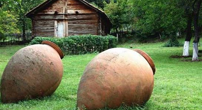 初釀葡萄酒轉(zhuǎn)移至另一個(gè)陶罐后還需陳釀一年。在此期間需每月要檢查一次,需要時(shí)向罐中補(bǔ)充葡萄酒,確保處于滿罐狀態(tài)。