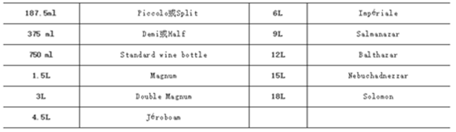 在如今琳瑯滿目的商店中,我們能選擇購買的葡萄酒瓶涵蓋了從187ml-18L不等的尺寸,它們中的某些甚至還有著特殊的稱謂: