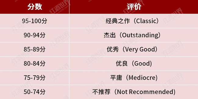 為了提升雜志的內(nèi)容質(zhì)量,WS在給新發(fā)布的酒款做品評(píng)的同時(shí),也在不斷改進(jìn)自己的評(píng)價(jià)機(jī)制。從修正版加州大學(xué)戴維斯分校九分制(Modified UC Davis Nine-point Scale)到歐洲二十分制,再到挑選出“觀者之選(Spectator Selections)”、“高性價(jià)比(Best Buys)”和“不推薦(Not Recommended)”酒款,WS對(duì)葡萄酒的評(píng)價(jià)機(jī)制幾經(jīng)變換。1985年,WS決定采用百分制來(lái)評(píng)價(jià)葡萄酒并沿用至今。百分制以50分為起評(píng)分,將酒款劃分為六個(gè)等級(jí):