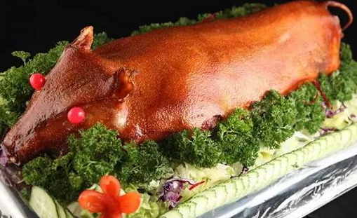 制作烤乳豬的時候先將內(nèi)臟去掉,取香料腌制入味,再進(jìn)行烤制,另外,豬皮含大量膠原蛋白,有養(yǎng)顏健膚功能。乳豬較瘦,脂肪含量少。色澤紅潤,光滑如鏡,皮脆肉嫩,香而不膩,讓你百吃不厭。