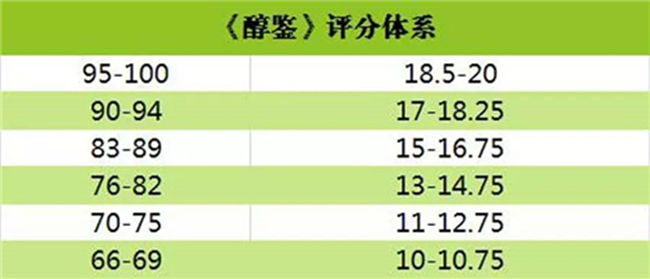 (4)《葡萄酒與烈酒》采取 100 分制,起始分為 80 分,共分為 4 個(gè)檔次。