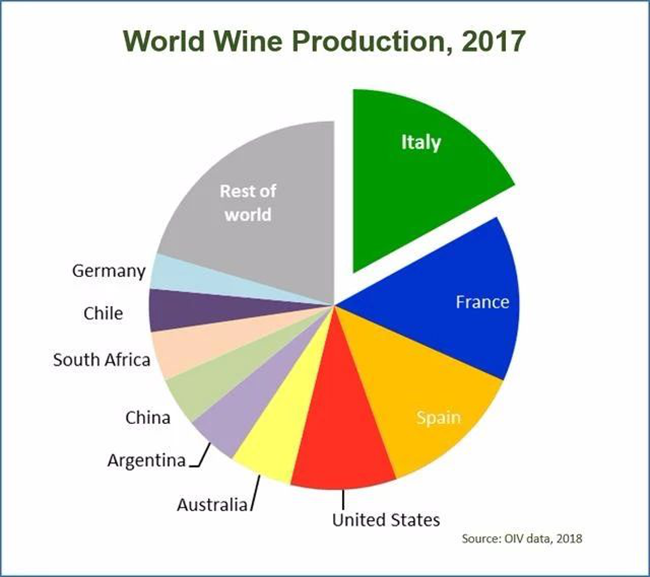 △2017年全球葡萄酒產(chǎn)國(guó)產(chǎn)量圖:意大利第一,法國(guó)第二
