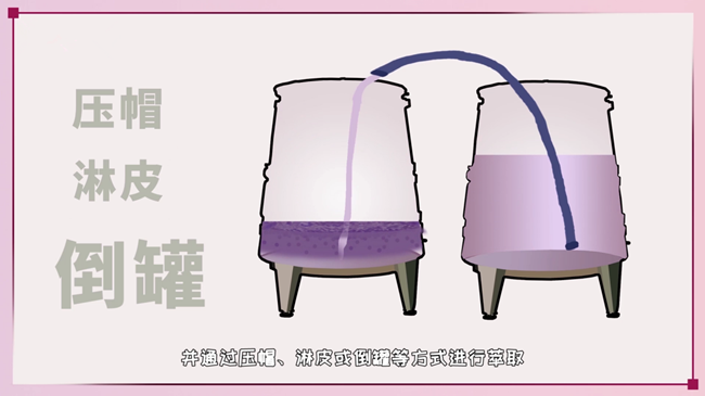 ?、?倒罐和回混(Rack and Return):將發(fā)酵中的葡萄汁排出至另一個發(fā)酵容器中,僅剩下酒帽,再將葡萄汁泵回至酒帽上。