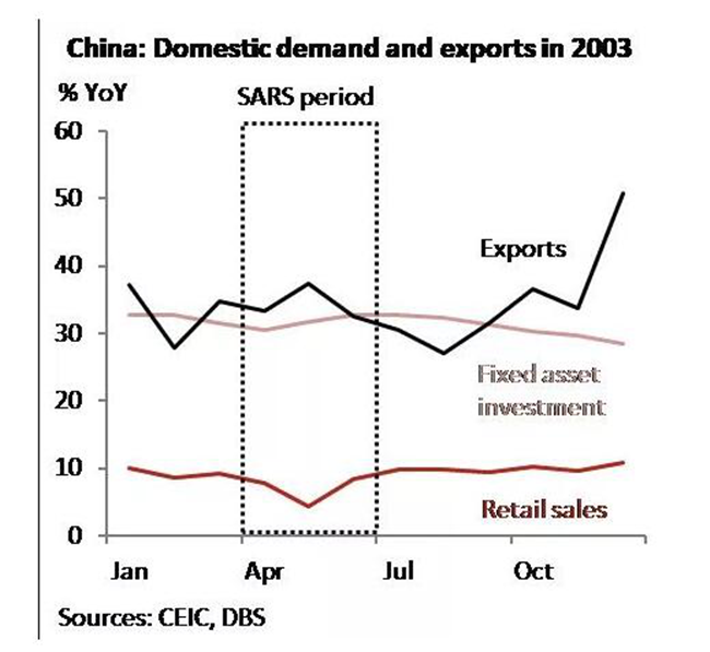 星展集團(tuán)(DBS Group)的報(bào)告指出,2003年SARS疫情爆發(fā)期間零售銷售遭到很大的打擊,但疫情過后短時(shí)間內(nèi)消費(fèi)就有很大的反彈??梢灶A(yù)見,新冠疫情結(jié)束之后,經(jīng)營(yíng)良好的企業(yè)將趁著消費(fèi)反彈的大勢(shì)蠶食原本屬于健康度不佳的企業(yè)的份額。