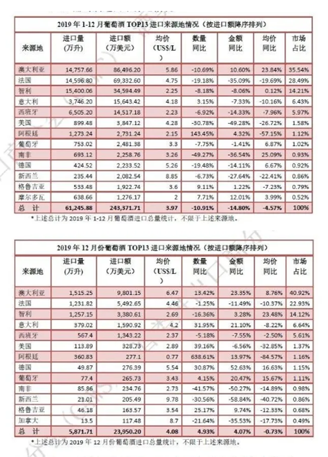 智利葡萄酒市場(chǎng)占有率比2018年的10.1%有明顯提升,但其酒協(xié)提高定位和提升品牌的努力成效不大,均價(jià)同比僅上漲了0.12%。