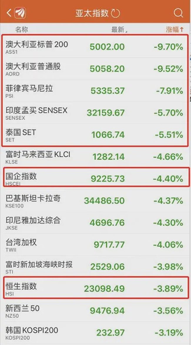 覆巢之下,無(wú)有完卵。早在3月16日,美股開(kāi)盤暴跌超7%后,亞太主要股市也集體下挫。