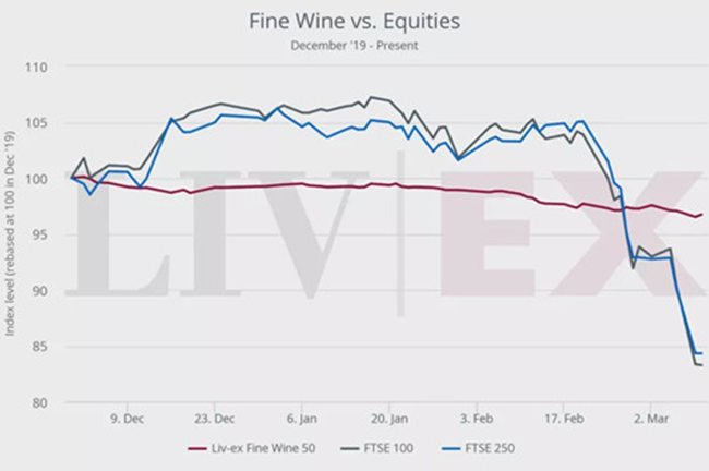 3月14日,liv-ex發(fā)布了一周葡萄酒交易市場(chǎng)報(bào)告,報(bào)告稱在全球疫情蔓延情況下,上周全球股市遭受嚴(yán)重打擊,但優(yōu)質(zhì)葡萄酒卻一直相對(duì)穩(wěn)定。