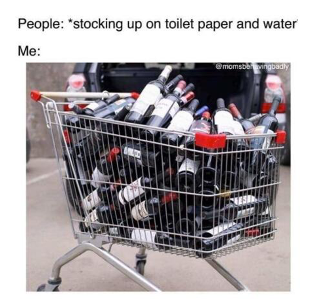 ◆來自美國爾灣的ScanMyPhotos.com:忘了衛(wèi)生紙吧,我只看到有人在購物車里裝滿了葡萄酒,這已經是他們推出的第二輛購物車了。他們笑著說:“如果我要被困在家里,必備的東西一定是酒!”