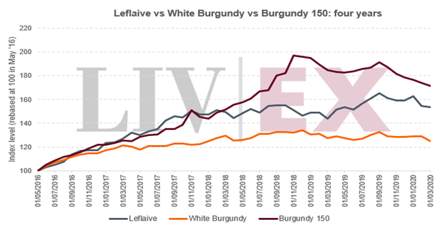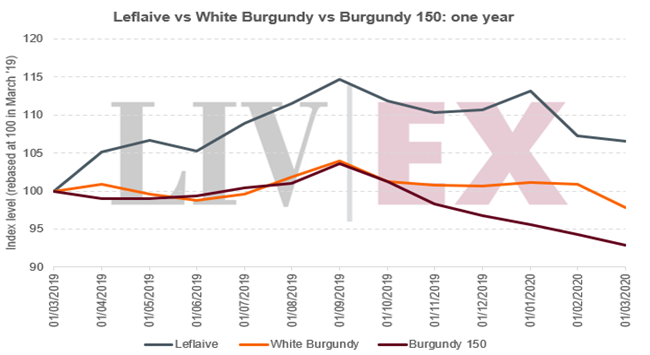然而,在過去的一年,勒弗萊(6.5%)的表現(xiàn)也優(yōu)于勃艮第150(-7.2%)。 事實(shí)上,勃艮第150指數(shù)是表現(xiàn)最差的Liv-ex 1000分項(xiàng)指數(shù); 我們在最近的專題報(bào)告: 高峰后的勃艮第 中也探討了它的跌勢。