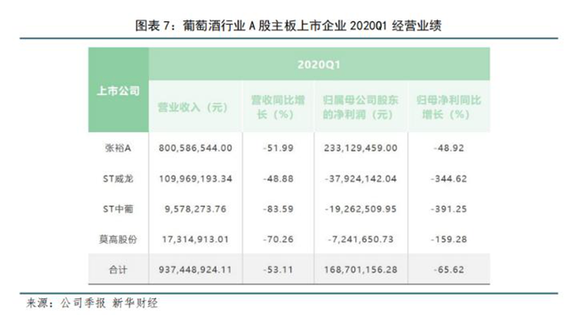 新冠肺炎疫情對(duì)于本就脆弱的葡萄酒行業(yè)來講,無疑是一記重錘。2020年第一季度,四家葡萄酒企業(yè)總營收9.37億元,同比降低53.11%;實(shí)現(xiàn)歸母凈利1.69億元,同比降低65.62%。只有張?jiān)R患覛w母凈利維持正值,其余皆為虧損。業(yè)內(nèi)人士曾表示“葡萄酒行業(yè)'短期不樂觀',2020年將是國內(nèi)葡萄酒市場近十年來最艱難的一年。”
