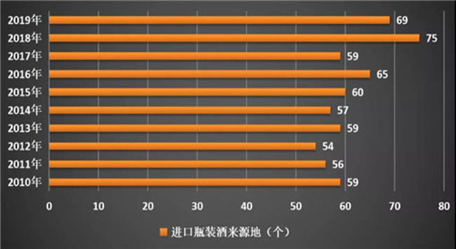 二是進(jìn)口來(lái)源地減少。2020年一季度,瓶裝酒進(jìn)口來(lái)源地為52個(gè)。