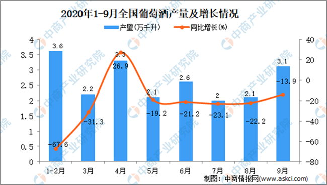 2020年1-9月全國(guó)葡萄酒產(chǎn)量統(tǒng)計(jì)