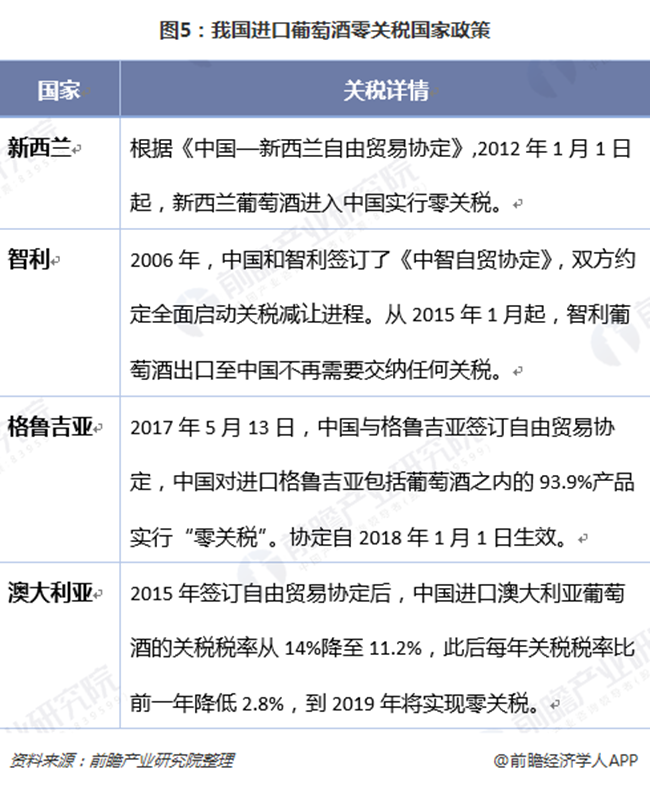 我國分別于2012年和2015年先后對新西蘭和智利進口葡萄酒實施零關(guān)稅,僅需繳納消費稅10%和增值稅16%。2018年起格魯吉亞進口葡萄酒也加入零關(guān)稅隊伍。根據(jù)中澳自貿(mào)協(xié)定,至2019年,我國進口澳大利亞葡萄酒的關(guān)稅將逐年降至零。關(guān)稅下行,不僅刺激著中國進口葡萄酒市場的發(fā)展,使進口葡萄酒的競爭進入白熱化階段,對中國國產(chǎn)葡萄酒市場份額的擠壓也是無可避免。