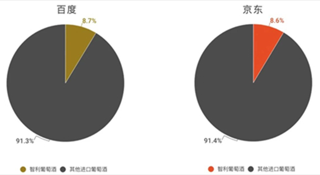 智利葡萄酒在“酒咔嚓”合作平臺(tái)百度和京東上的搜索量占比
