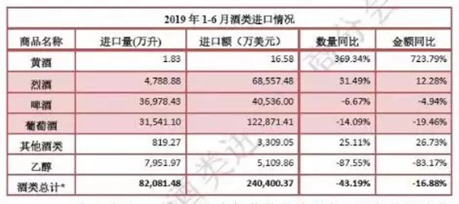 8月12日,中國(guó)食品土畜進(jìn)出口商會(huì)酒類(lèi)進(jìn)出口商分會(huì)公布2019年1-6月酒類(lèi)統(tǒng)計(jì)數(shù)據(jù),數(shù)據(jù)顯示,2019年上半年,進(jìn)口葡萄酒仍處低位,進(jìn)口量3.1億升,降幅進(jìn)一步收窄3%,進(jìn)口額12.3億美元,降幅基本持平。烈酒方面呈現(xiàn)逆市飄紅,進(jìn)口量實(shí)現(xiàn)超三成增長(zhǎng)。