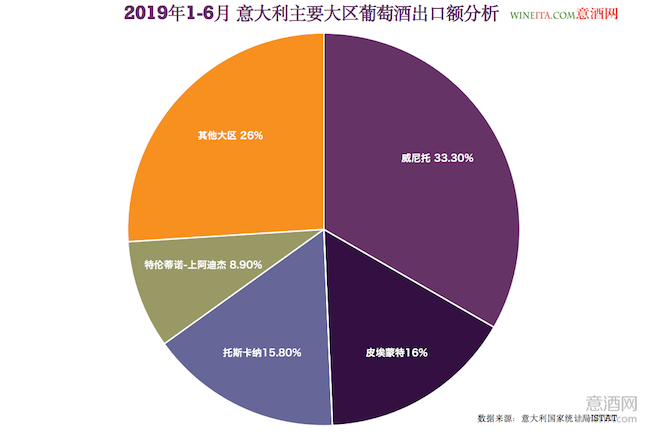 其中威尼托(Veneto)大區(qū)的出口額達(dá)到10億歐元,較2018年同期增長(zhǎng)3.6%。皮埃蒙特(Piemonte)大區(qū)的出口額達(dá)到4.79億歐元,較2018年同期增長(zhǎng)4.9%。托斯卡納(Toscana)大區(qū)的出口額達(dá)到4.75億歐元,較2018年同期增長(zhǎng)4.3%。特倫蒂諾-上阿迪杰(Trentino-Alto Adige)大區(qū)的出口額達(dá)到2.68億歐元,較2018年同期增長(zhǎng)2.4%。