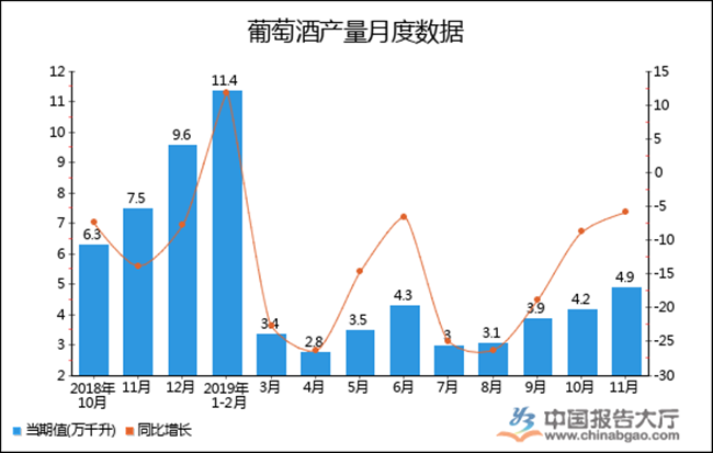 以上就是2019年1-11月全國(guó)葡萄酒產(chǎn)量統(tǒng)計(jì),數(shù)據(jù)來源于國(guó)家統(tǒng)計(jì)局及中國(guó)報(bào)告大廳數(shù)據(jù)中心整理發(fā)布,僅供參考。