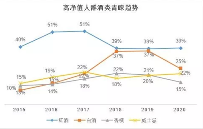 實際上,葡萄酒已越來越成為中國消費者喜愛的酒精飲料。據(jù)胡潤研究院發(fā)布《2020胡潤至尚優(yōu)品—中國千萬富豪品牌傾向報告》顯示,中國高凈值人群(平均家庭總資產(chǎn)4600萬元)最青睞酒類是紅酒,對葡萄酒的喜愛甚至超過白酒。