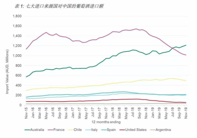 截至2019年12月底的12個(gè)月中,澳大利亞葡萄酒對(duì)中國(guó)市場(chǎng)(包括香港和澳門)的出口額增長(zhǎng)12%,創(chuàng)下12.8億澳元新高,出口量下滑17%至1.42億升 (等量于1580萬箱9升裝)。平均出口額增長(zhǎng)35%至8.99澳元(每升離岸價(jià))。澳大利亞葡萄酒對(duì)中國(guó)市場(chǎng)的出口總額及平均出口額雙雙創(chuàng)下了年度新高。
