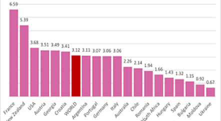 世界葡萄酒出口價(jià)格數(shù)據(jù):法國第一,格魯吉亞第五