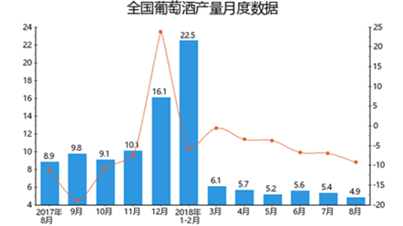 2018年1-8月全國葡萄酒產(chǎn)量統(tǒng)計(jì)分析