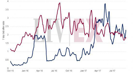 Liv-ex的實(shí)時出價和報價總值持續(xù)不斷創(chuàng)紀(jì)錄高位,目前約在4750萬英鎊水平。即自三周前公布的新紀(jì)錄以來,又再增加了250萬英鎊。 令人鼓舞的是,出現(xiàn)出價和報價總值增加的酒區(qū)不只限于波爾多,而跨越了多個不同的酒區(qū)市...