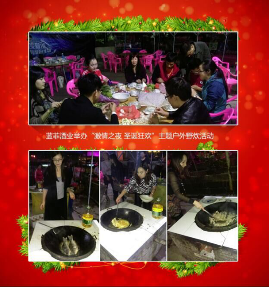 12月25日,適逢圣誕節(jié)來臨之際,公司組織藍菲酒業(yè)全體員工開展“激情之夜 圣誕狂歡”為主題的農(nóng)家樂戶外野炊活動,讓全體員工在公司共度一個難忘的圣誕節(jié)。